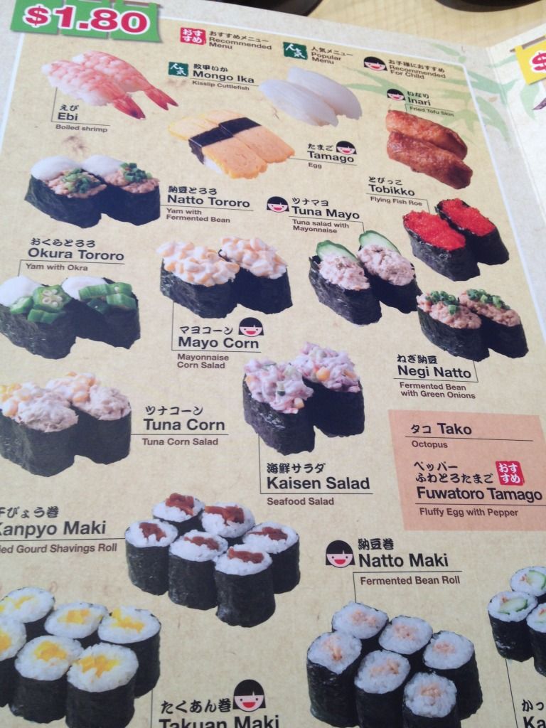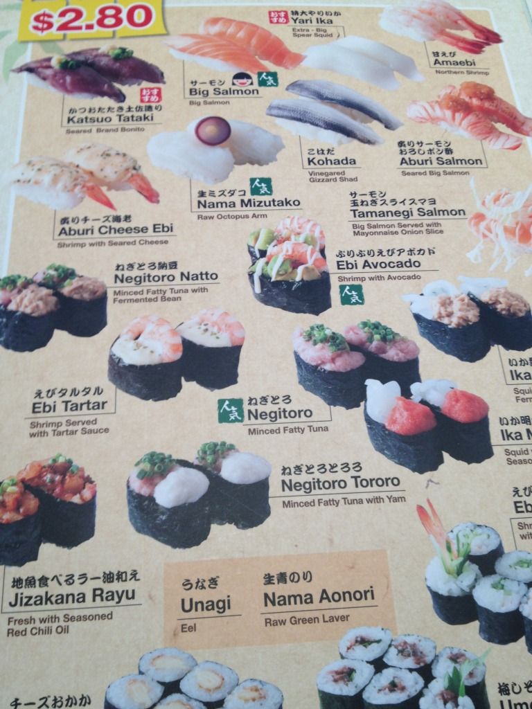 So it might be better to get a seat around the conveyor belt. So that you don't have to rely on these waiters.
