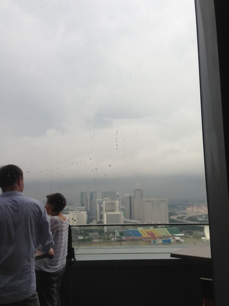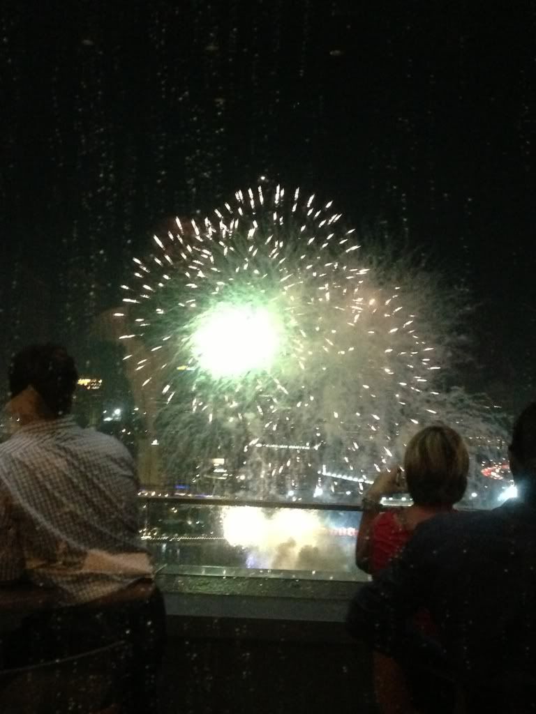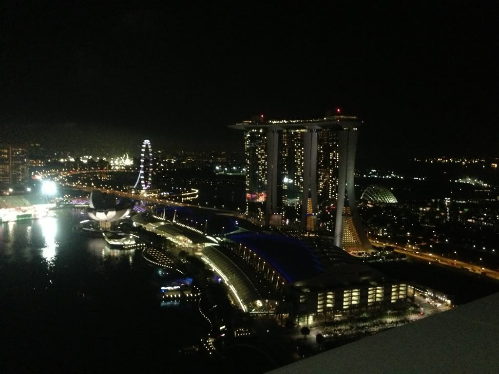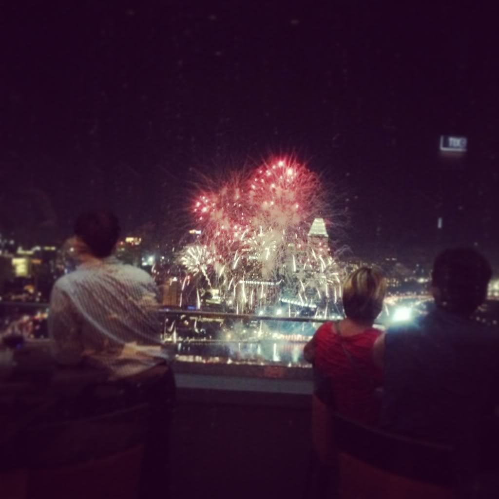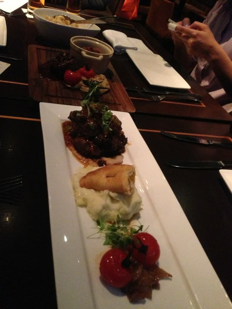 We are off to Level 33 for a chillax dinner!Level 33 Marina Bay Financial Centre Tower 1 8 Marina Boulevard Singapore 018981 We made a reservation and got a table indoors. We actually wanted to sit outside but they were reserved for drinking. Luckily we didn't sit outdoors. It started raining later in the evening! Heng ah... What's relaxing without alcohol? It's really quite expensive, the alcohol. Happy hour is until 8pm. So be sure to place your orders before 8! My two cute petite girls - Aileen and Priscilla! They are really so petite that I feel like a fat giant beside them. Life's unfair! Rachel and I. We have great telepathy, always wearing the same colours!Starter: Quail Pan seared breast, celeriac puree, chargrilled savoy, fava beans and caramel malt jus. Quite yummy! Maybe because we were too hungry. haha..Mains: Wagyu Steak I can't remember the description for this but the steak is really good. Much better than Back & Belly.Mains: Back & Belly Chargrilled 200 days aged Stockyard sirloin and slowly braised blackened Wagyu brisket, potato onion hash, blistered tomato and wild mushroom jus. They both taste the same but just slightly different. Don't really like braised stuff so I won't recommend this. Halfway through the meal, there were fireworks! We are so lucky to have the view right in front of us! Many people gather around our table to get a good shot of the beautiful fireworks! After we are done with dinner, we just had to go out to admire this fabulous night scene of Singapore's CBD area. Ya, as you can see. We are very excited about this place. All so sua ku, like we have never seen it before. *embarrassing but who cares?* yay! I love my girls!